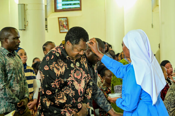 Makamu wa Rais wa Jamhuri ya Muungano wa Tanzania Mhe.Balozi Dkt. Emmanuel Nchimbi akipaka majivu katika Ibada ya Jumatano ya Majivu iliyofanyika Kanisa Katoliki Parokia ya Mtakatifu, Paul wa Msalaba Jimbo Kuu Katoliki Dodoma leo tarehe 18 Februari 2026. Ibada ya Jumatano ya Majivu ni mwanzo wa kipindi cha Kwaresma ambacho hutumika na waumini wa…