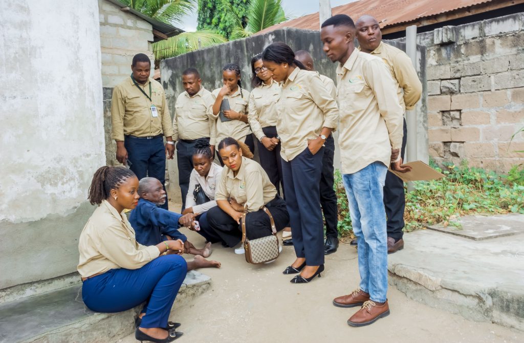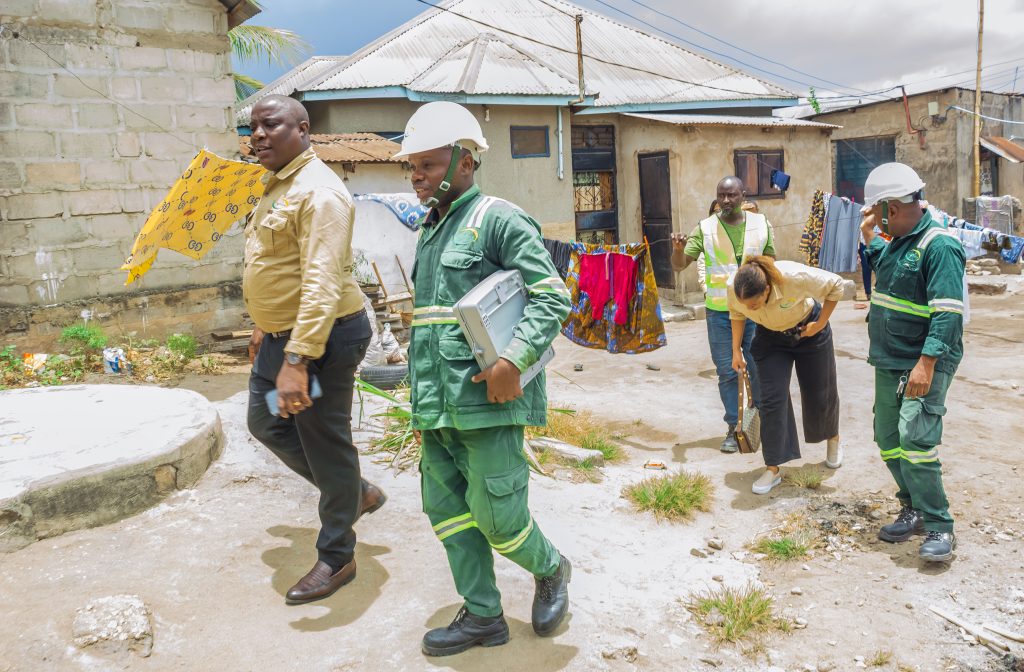 Meneja wa TANESCO Wilaya ya Mbagala Mhandisi Charles Msangi akiwa na mfanyakazi wa Wilaya hiyo wakiwasili Nyumbani kwa Mzee Maulid Ngakonda, Kata ya Toangoma, Mtaa wa Kongowe – Mzinga A, Dar es Salaam.