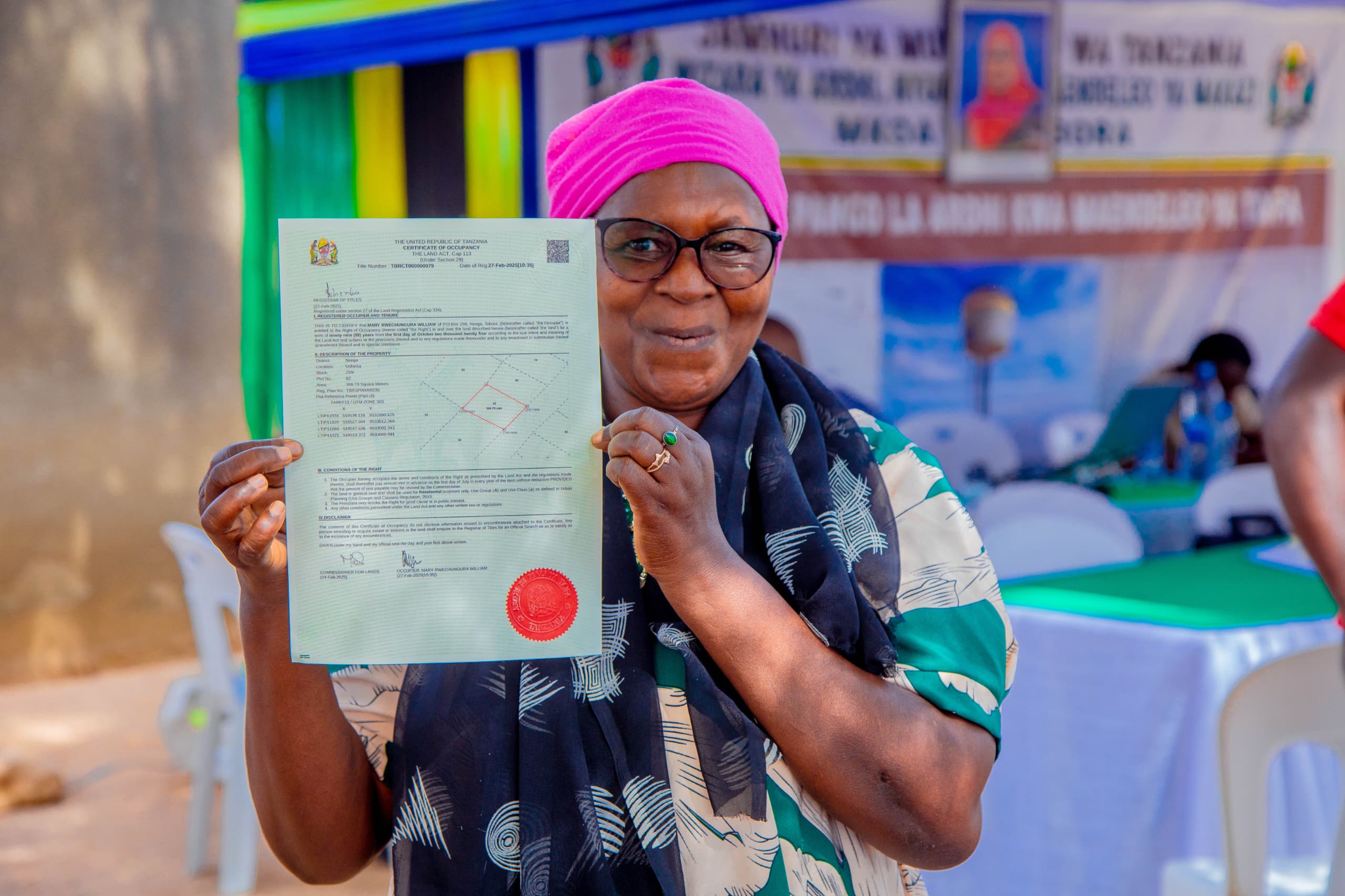 Miongoni mwa wanawake waliopata hati miliki Bi. Constansia Kapama alieleza furaha yake baada ya kupokea hati miliki ya kiwanja chake, akisema hatua hiyo imempa uhakika wa umiliki na uwezo wa kutumia ardhi yake kama rasilimali ya maendeleo.