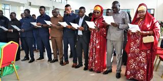 Madiwani wa halmashauri ya Manispaa ya Kigoma ujiji wakila kiapo leo Jumanne , Desemba 2, 2025