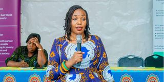 Asia Haji Mussa akikaguliwa kitambulisho chake na mmoja wa wasimamizi wa wapiga kura (hakutaka kutaja jina lake) katika kituo cha wapiga kura Gamba Mkoa wa Mjini Magharibi. Picha na Jesse Mikofu