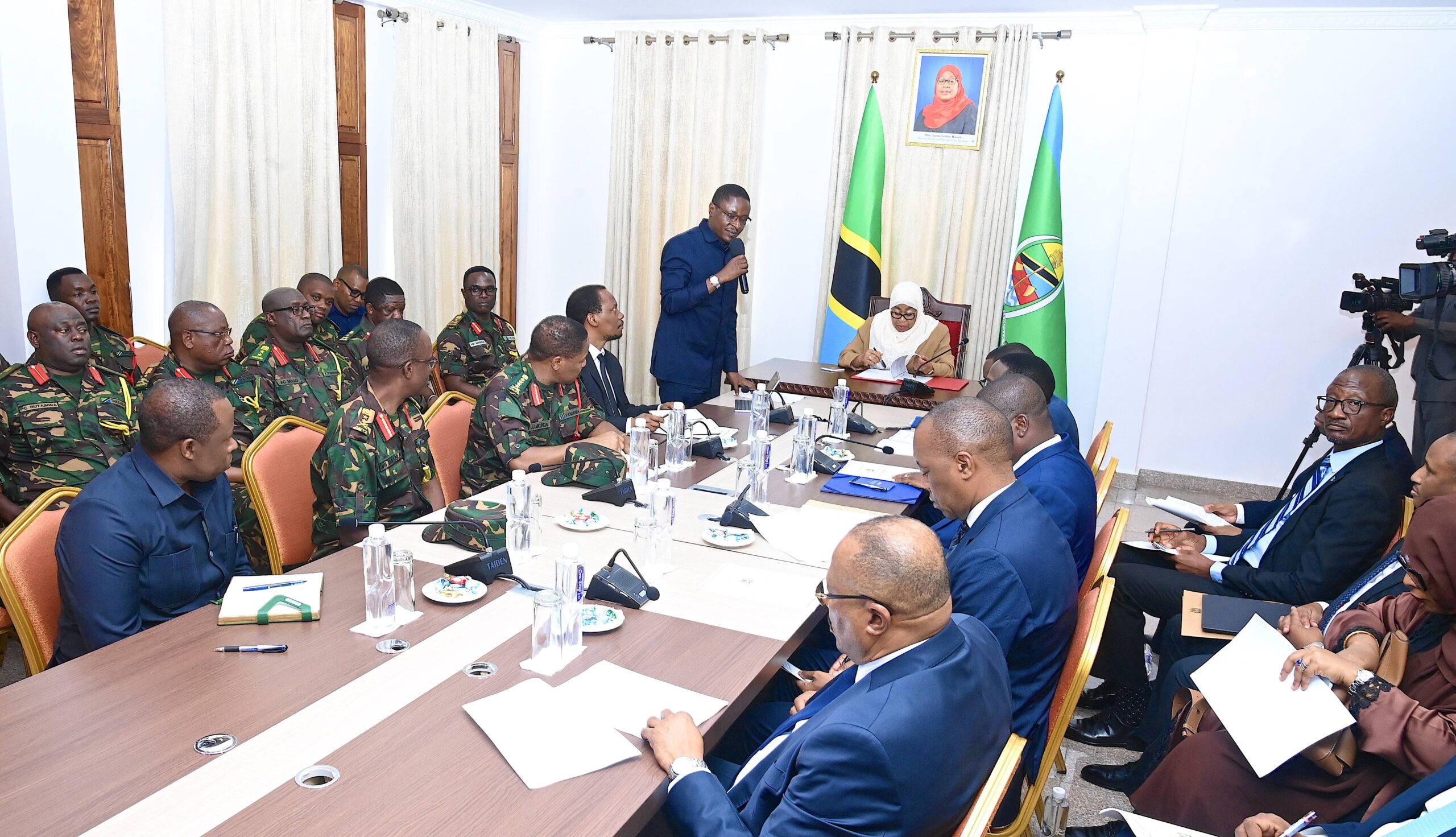 Rais wa Jamhuri ya Muungano wa Tanzania na Amiri Jeshi Mkuu, Mhe. Dkt. Samia Suluhu Hassan akiwa kwenye mazungumzo na Viongozi wa Wizara ya Ulinzi na Jeshi la Kujenga Taifa, Ikulu ndogo ya Tunguu – Zanzibar, tarehe 06 Januari, 2026.