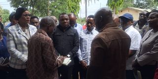 Naibu Waziri Ofisi ya Rais, Mipango na Uwekezaji, Dk Pius Chaya (mwenye notebook) akiwa katika eneo la Hoteli ya Musoma alipofanya ziara kukagua eneo hilo. Picha na Beldina Nyakeke