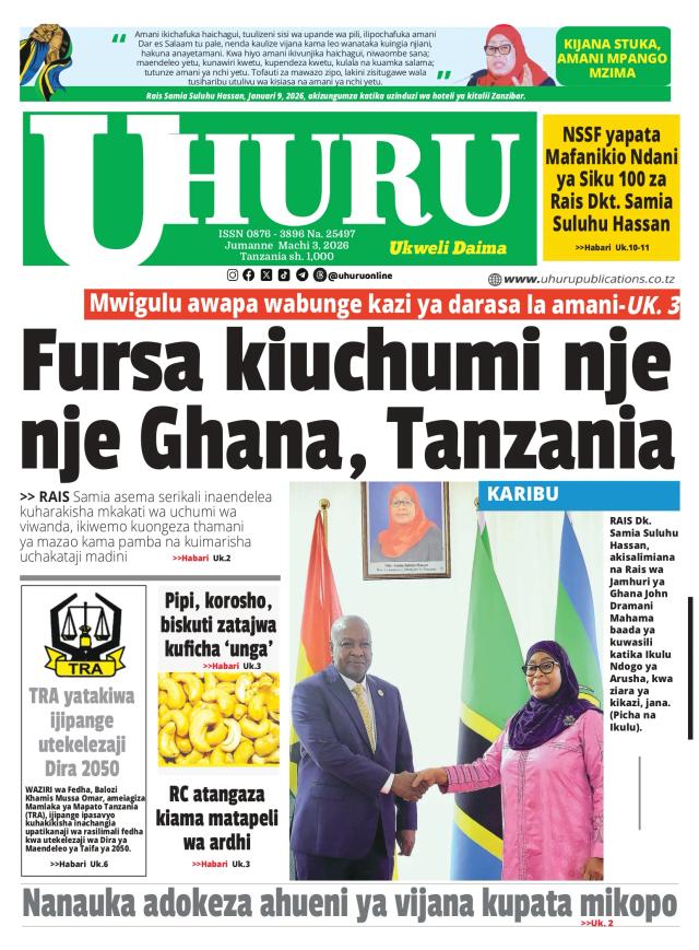 MagazetiMAGAZETI YA TZ LEO J'NNE MACHI 3,2026 Admin1 hour ago01 mins 6 Post navigation Previous: Barker: Ile suluhu, tatizo DiarraNext: Melania Trump anaongoza kikao cha kihistoria kuhusu watoto walio katika migogoro – Global Issues