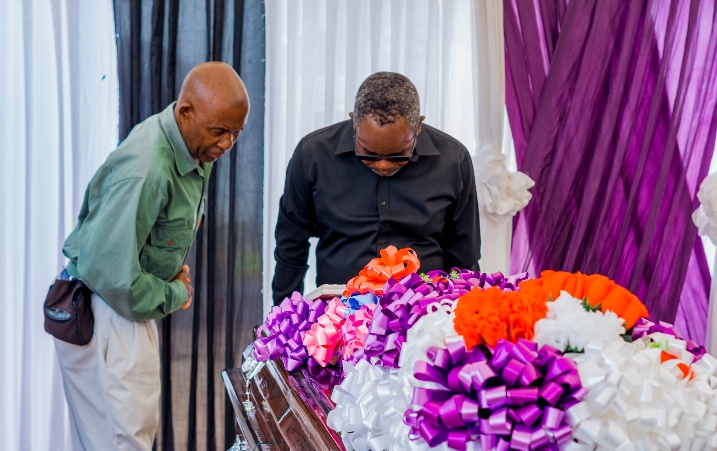 Mwandishi wa habari Mwandamizi na Mkurugenzi wa Full Shangwe Media, Bw. John Bukuku akiaga mwili wa Mama yake Mzazi Anyambilile M. Kilindu katika ibada iliyofanyika Leo Machi 8, 2026 Madale, Dar es Salaam.