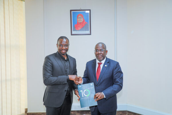 Waziri wa Fedha wa Serikali ya Jamhuri ya Muungano wa Tanzania, Mhe. Balozi Khamis Mussa Omar (Mb.) kulia, akipokea taarifa ya utekelezaji wa majukumu ya Benki ya Maendeleo ya Kilimo Tanzania-TADB, ya kipindi cha miaka 10 tangu ianzishwe mwaka 2015-2025, kutoka kwa Mkurugenzi Mtendaji wa benki hiyo, Bw. Frank Nyabundege, katika Ofisi za Wizara ya…